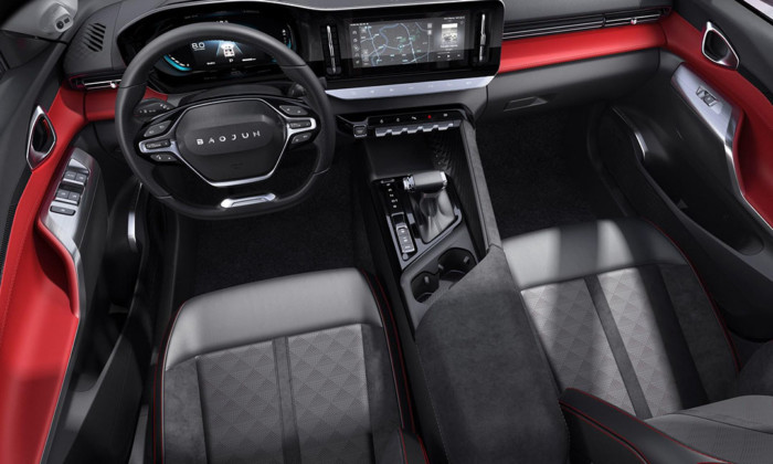 Офіційні фото інтер’єру Baojun RC-5 вже можна знайти в мережі. Судячи із зображень, новинці дістануться стильна передня панель, віртуальна «приборка», візуально поєднана з тачскріном мультимедіа, а також двоспицеве кермо з планкою.