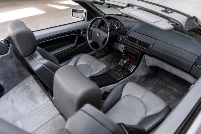 Родстер має сірий шкіряний салон та оснащений візуальним пакетом AMG, встановленим на заводі, включаючи комплект 19-дюймових коліс AMG.