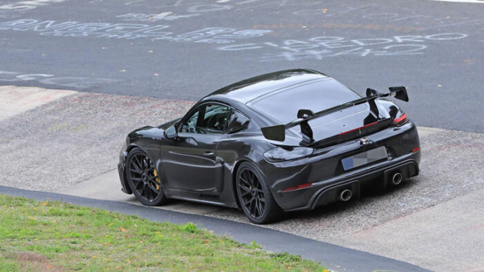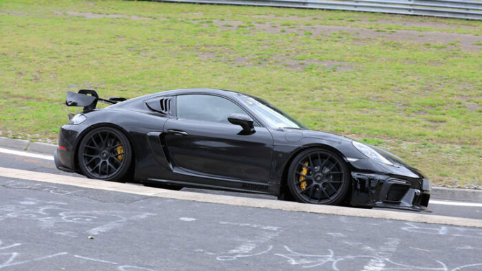 Компанія Porsche продовжує дорожні випробування нового «мула» для Porsche 718 Cayman GT4 RS на Нюрбургринзі. Судячи з опублікованих знімків, новинка отримає такі ж керовані повітрозабірники, як старша модель Porsche 911 GT3 RS, величезне антикрило і колісні диски іншого дизайну з центральною гайкою.