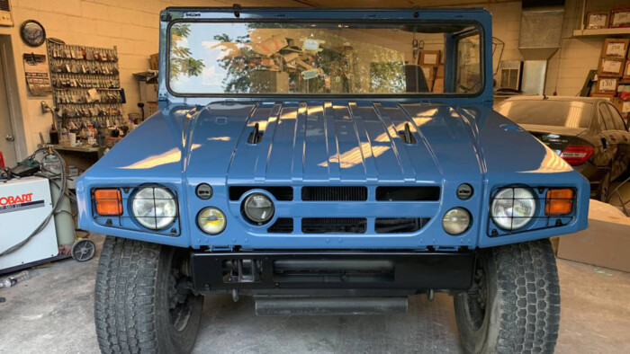 Знаменитий військовий позашляховик належав армії Японії. Такі машини випускали з 1995 по 2001 рік. Mega Cruiser синього кольору оснащений однорядною кабіною і знімним м’яким тентом, але додатково його можна обладнати закритим металевим дахом.