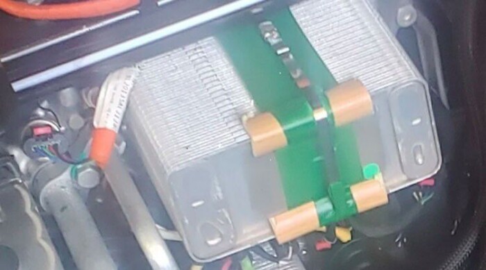 А саме, деякі власники Tesla Model Y помітили незвичайну систему кріплення радіаторів під капотом авто: системи охолодження були доповнені шматочками чогось схожого на бамбук або штучне дерево з найближчого будівельного супермаркету, прикріпленого чимось схожим на ізоляційну стрічку.
