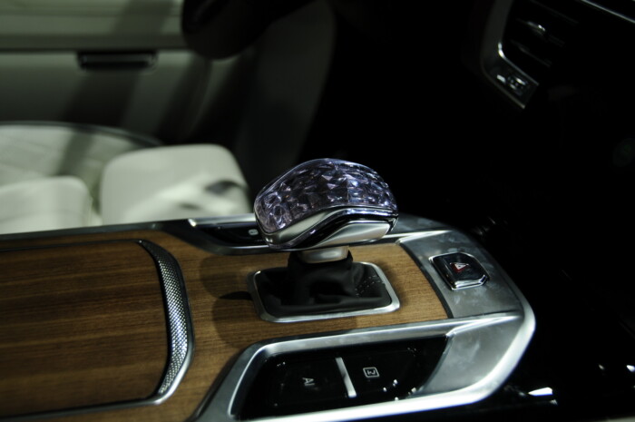 Інтер’єр виділяється трьома цифровими дисплеями, включаючи інформаційно-розважальну систему, цифрові датчики і елементи управління HVAC, і прикрашений тонкою шкірою і вставками з дерева і алюмінію.