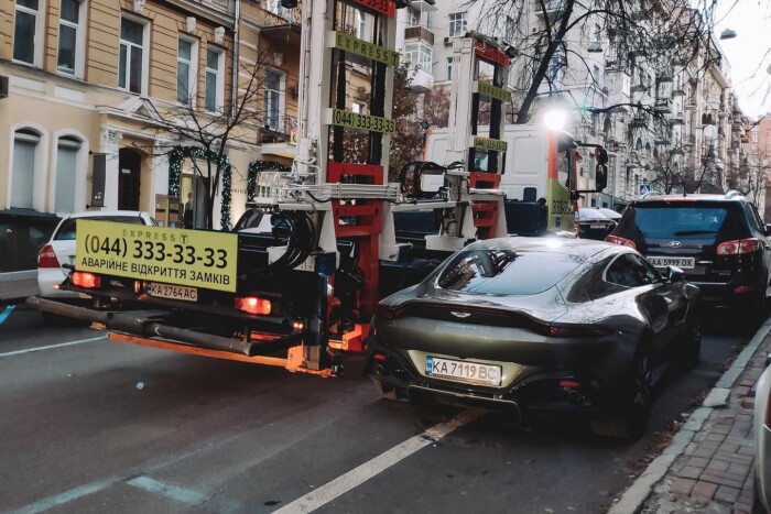 Стало відомо, що Aston Martin Vantage який зовсім нещодавно привезли до України з США – евакуювали у центрі Києва, і відвезли на штрафмайданчик, за те, що він стояв прямо на велодоріжці.