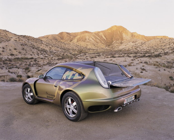 Rinspeed Bedouin був презентований в Женеві в 2003 році, та серед глядачів викликав справжній фурор. Спорткар був ретельно допрацьований по всьому периметру, він має ексклюзивний дах, який дуже легко складається, перетворюючи багажний відсік в “ліжко” в дусі пікапа.