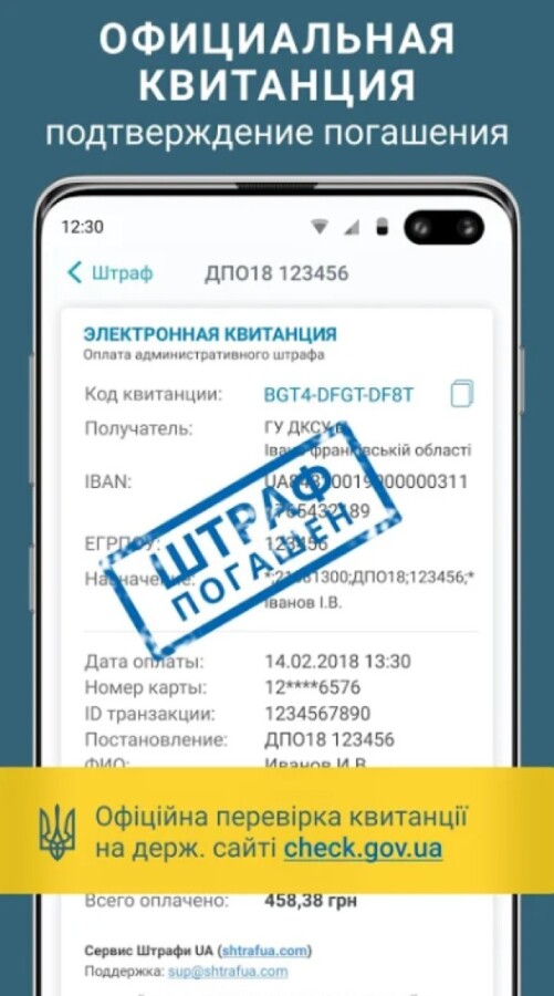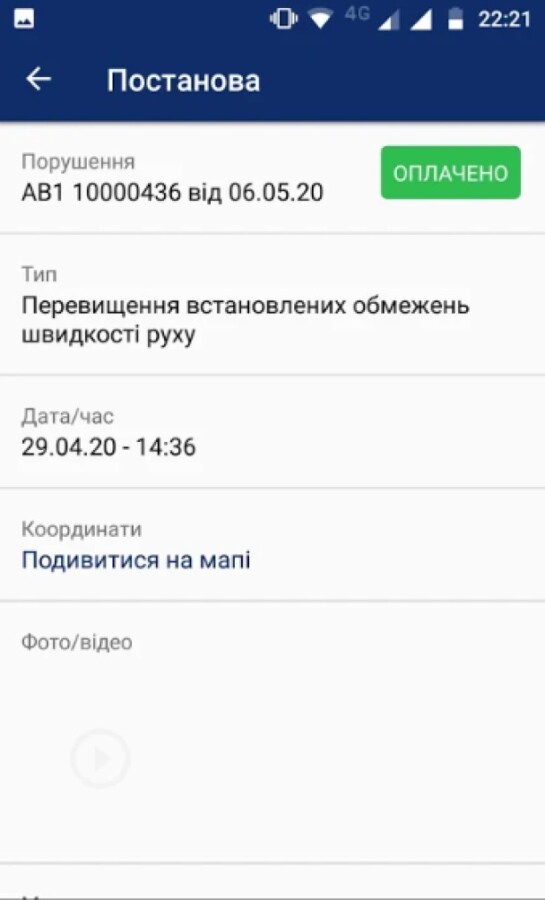 Додаток дозволяє оплачувати штрафи і перевіряти статус та історію платежів. Щоб отримати необхідну інформацію, потрібно ввести номер посвідчення водія, ІПН лили серію і номер штрафу.