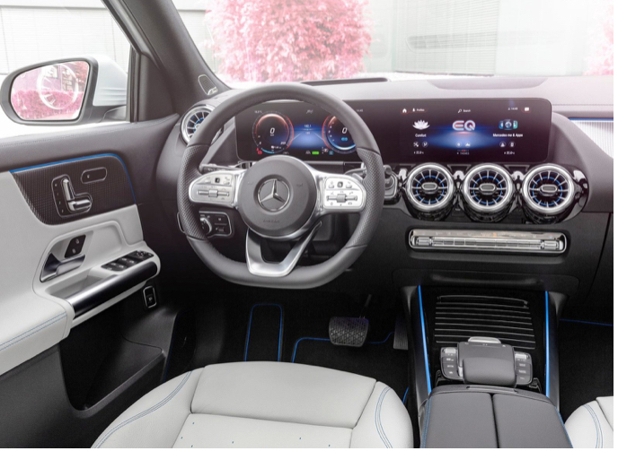 Інтер’єр прикрашає контурне підсвічування, металізоване оздоблення ручок та кнопок, турбіни-дефлектори вентиляції, комбінована або повністю шкіряна оббивка сидінь. Mercedes EQA 300 та Mercedes EQA 350 пропонують вже повний привід 4Matic та електромотор на 168 кВт (228 л.с.) або 215 кВт (292 л.с.) відповідно.