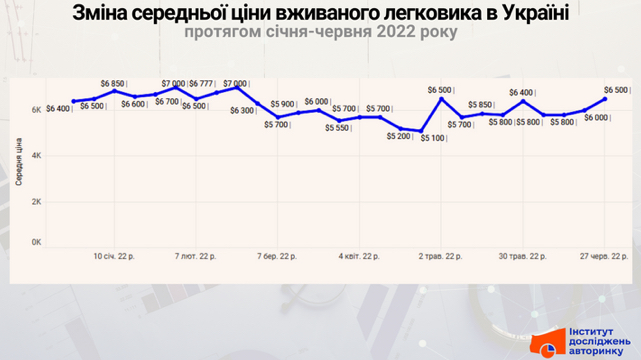Станом на 21 лютого 2022 року середня ціна вживаного авто складала $7 тисяч. Уже за тиждень, після початку повномасштабного вторгнення Росії, цей показник знизився до $6300.