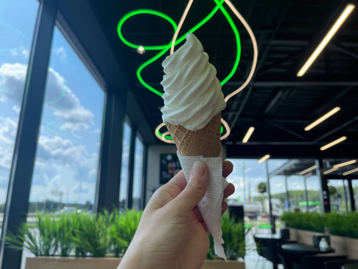 До речі, готується воно виключно з натуральних інгредієнтів на сучасному професійному обладнанні. Я обрала Ice DRIFT – класичне ванільне морозиво у хрумкому вафельному стаканчику-ріжку. Коли я взяла його в руки та спробувала, я на мить відчула себе радісною та щасливою дитиною.