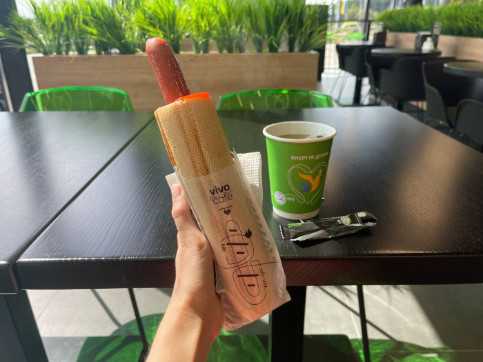 Прийшов час порадувати себе якимись смаколиками, тому я залишила авто на парковці й пішла обирати, щоб такого з’їсти. Асортимент VIVO café вражає різноманітністю, але для мене то вже традиція на заправках їсти хот-доги та пити чай.
