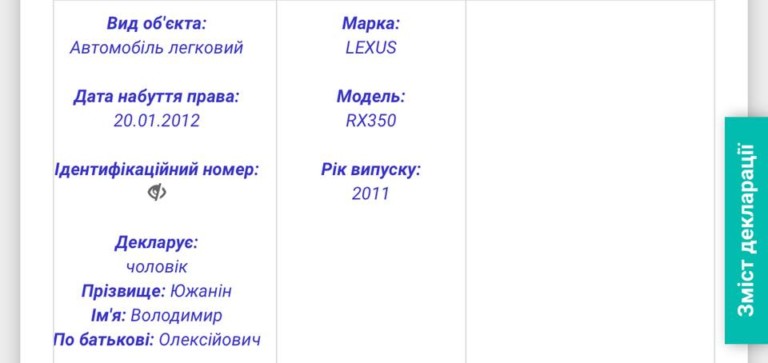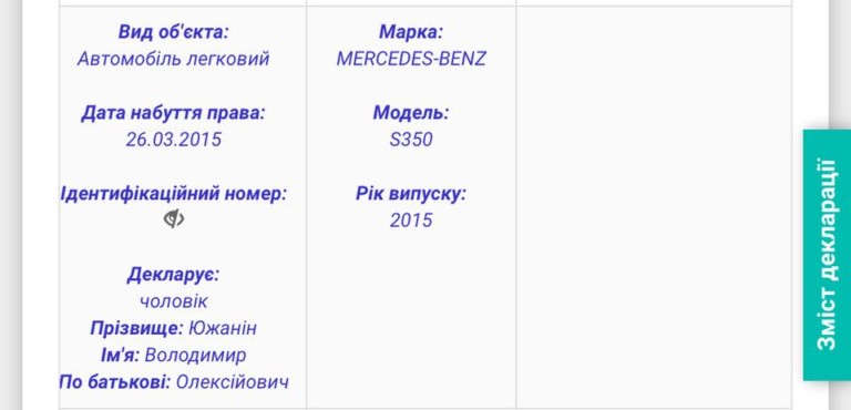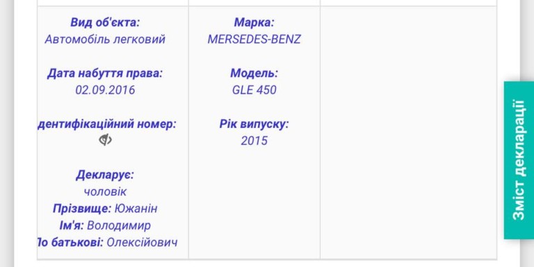- Mercedes-Benz GLE 450 2015 року випуску. У декларації вказано, що авто було придбано за 983 тис. гривень, хоча на ринку така модель коштує майже удвічі дорожче.