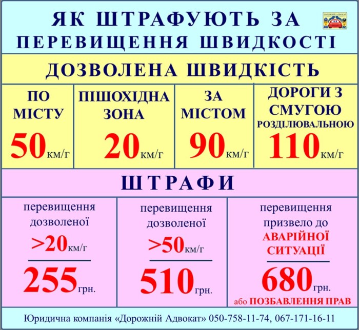 Тим часом Дорожній адвокат нагадую про актуальні суми штрафів для любителів швидкої їзди.