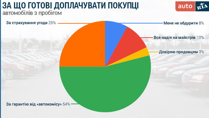 Видання AUTO.RIA з’ясувало, чи готові українці платити більше при купівлі перевірених автомобілів з пробігом, задля того, щоб отримати більше впевненості в тому товарі, який купують.