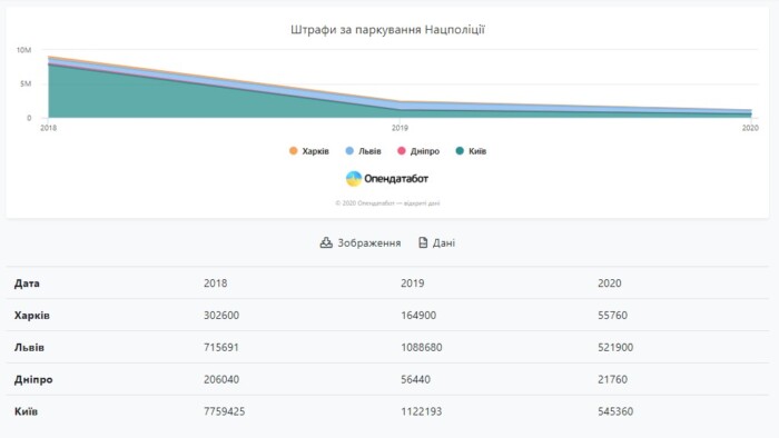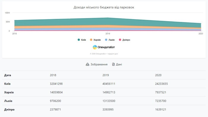 Порівнюючи з 2019 роком, в 2020 році доходи за користування платними парковками збільшилися на 42% у Дніпрі, на 35% у Львові, на 26% у Києві та на 7% у Харкові.