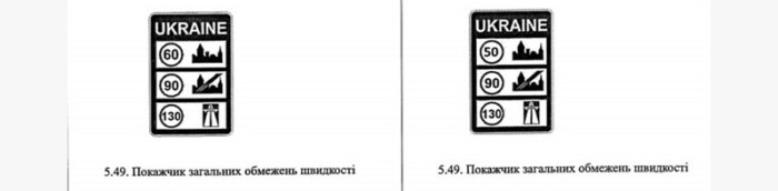 Знак “5.49”, а саме “Покажчик загальних обмежень швидкості” тепер демонструє позначку 50 км / год замість 60 км / год. Згідно з діючими ПДР, обидва знака підпадають під категорію інформаційних.