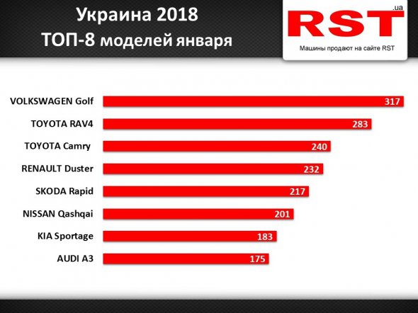 “Найпопулярніша марка в Україні – Toyota. Українці придбали майже тисячу автомобілів цього бренду. Якщо не враховувати вартості додаткового обладнання, то це понад 33 мільйонів доларів”, – говорять в аналітичному відділі RST.ua