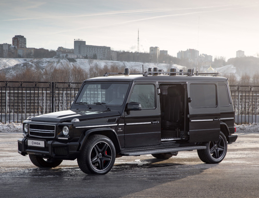 Mercedes G-Class Scarpion – подовжений автомобіль для кортежу перших осіб. Має зсувні двері і міні-дзеркала заднього виду на стійках кузова.
