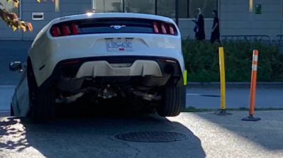 Американський Ford Mustang був залучених в досить дивний інцидент в Університеті Британської Колумбії (UBC) у Ванкувері. На знімках, опублікованих в Twitter, білий Мустанг завис на ряді сходів, що ведуть до пішохідного тротуару.