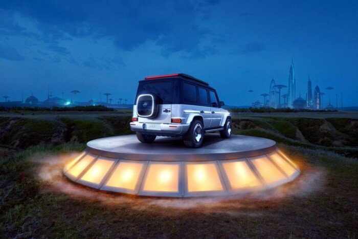 Як і інші електрокари Mercedes EQ, позашляховик отримав заглушку з діодним підсвічуванням на місці решітки радіатора. Також діоди з’явилися на даху, боковинах і запасному колесі. А ще поставили 22-дюймові диски.