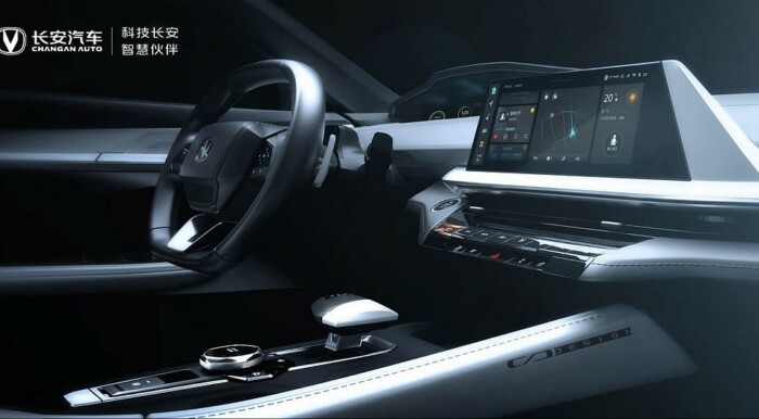 Changan Uni-V отримав відразу три дисплеї, які виконують роль панелі приладів. Також окремо розташовується величезний «ширячий» екран системи мультимедіа. Блок керування клімат-контролем також сенсорний.
