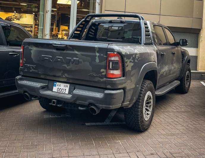 Нещодавно на вулицях Києва засвітився надпотужний Ram 1500 TRX. Заряджений пікап обклеїли камуфляжною плівкою. У ЗСУ такий апарат не був би зайвим.