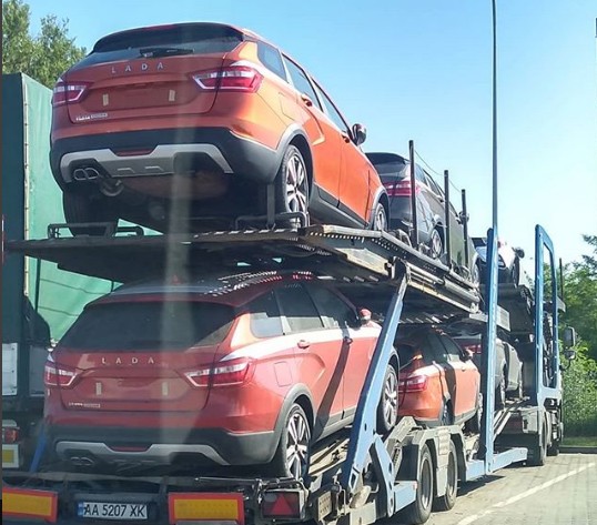 В соціальних мережах активно обговорюють світлини, на яких відображена доставка російських автомобілів в Україну. На автовозі помітили ВАЗівські універсали Lada Vesta SW Cross.