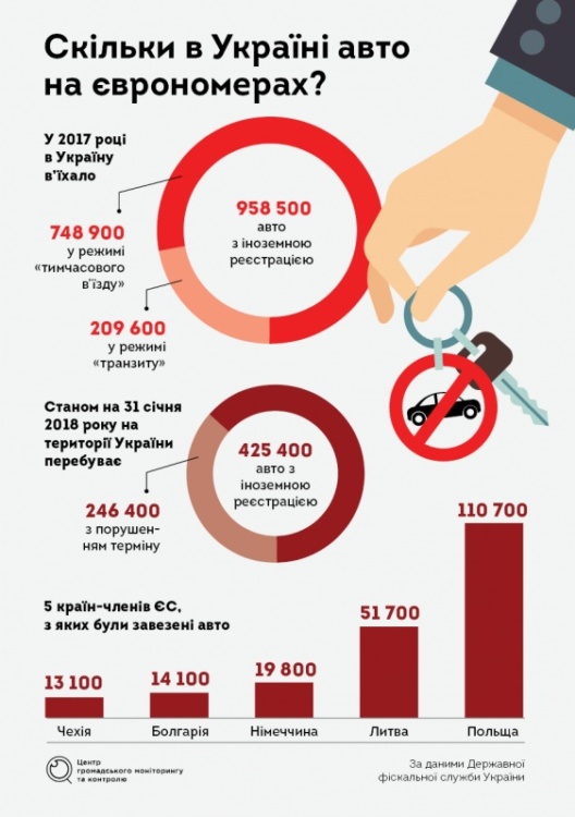 За неофіційною інформацією, кількість автомобілів на «єврономерах» в Україні перевищує півтора мільйона. Вживані авто переганяють практично з усієї Європи до Польщі, Латвії та Литви. Якщо загалом у зоні Євросоюзу середній вік авто 10,7 року, то в цих трьох країнах – 16-17 років.