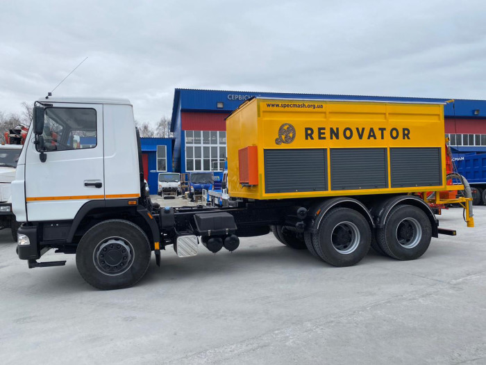А другий автомобіль, дорожня комбінована машина з установкою для ямкового ремонту призначена для цілорічного утримання міських та магістральних автодоріг з асфальтобетонним та цементобетонним покриттям. Це керована комп’ютером машина для ямкового ремонту доріг (покриття ремонтується струменево – ін’єкційним методом без попередньої підготовки), обладнання повністю автономне. Вона заповнює ями сумішшю бітумної емульсії й щебеню, використовуючи стиснене повітря.