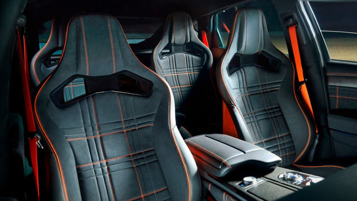 Інтер’єр концепту отримав чотири спортивні індивідуальні крісла. Елементи каркасу у них зроблені з вуглепластику, тим самим полегшуючи вагу, а подушка та спинка обтягнуті поєднанням шкіри Nappa та замші.
