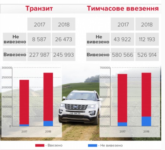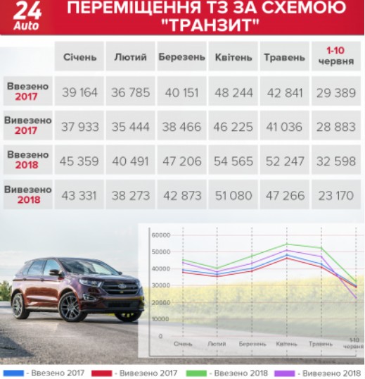Згідно даних ДФСУ, за перші п’ять місяців та 10 днів червня в Україну було завезено 272,5 тисячі автомобілів з іноземною реєстрацію в режимі “транзит”. За це же час вивезли 246 тисячі “транзитних” авто, тобто 26,5 тисячі залишилося. Цікаво, що за аналогічний період минулого року ця різниця становила лише 8,5 тисячі автомобілів, тобто кількість невивезених авто в режимі “транзит” збільшилась більш, ніж втричі.