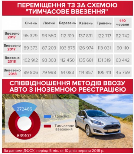 Таким чином, загалом за двома схемами ввозу в Україну за 5 місяців та 10 днів червня заїхало 911 тисяч автомобілів з іноземною реєстрацію, виїхало – 773 тисячі. В країні залишилося більше 138 тисяч машин, що в 2,6 рази більше, ніж за той же період торік. Це свідчить про подальше збільшення ввезення автомобілів “на бляхах”, тобто таких машин стає в Україні ще більше з кожним днем.