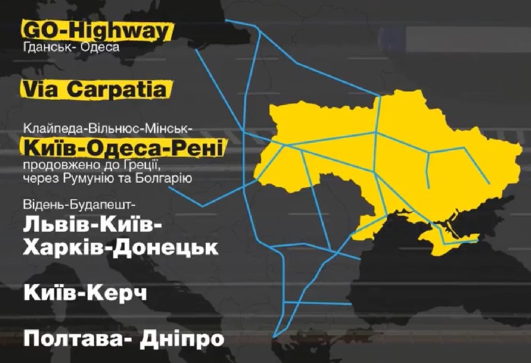 На даний момент відомо про такі автошляхи, як транскарпатський автобан (Via Carpatia), Львів-Київ-Харків-Донецьк, Київ-Керч, Полтава-Дніпро та Одеса-Рені (до Греції).
