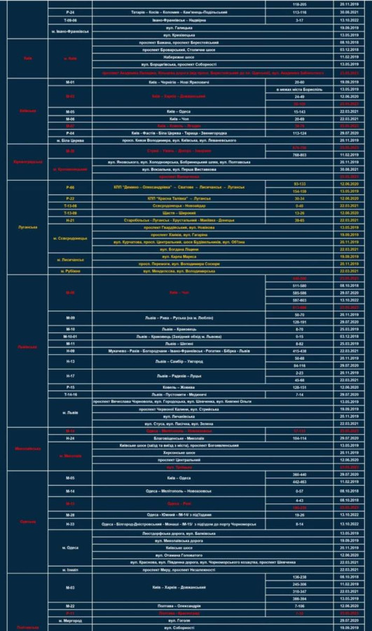 Отже, з урахуванням воєнного стану та результатів проведеного аналізу аварійності, до переліку ділянок були внесені наступні зміни: