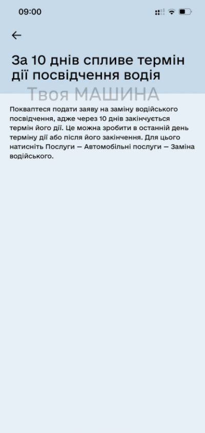 За 10 днів до дня припинення сроку дії, застосунок надіслав нагадування.