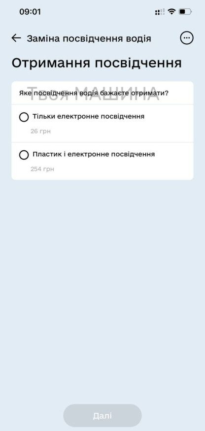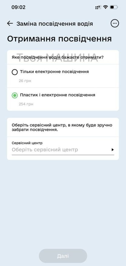 3. Обрати який варіант посвідчення ви хочете, тільки електронне чи електронне і пластик