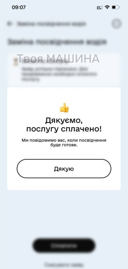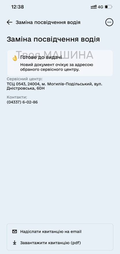 О 12-й годині того ж дня, вже надійшло повідомлення, що водійське посвідчення готове до видачі.