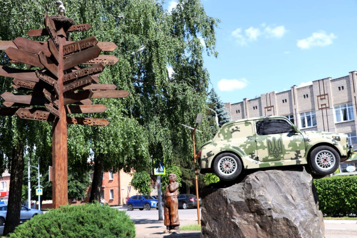 Пам’ятник Запорожця, який розташований поруч із Барським коледжем транспорту та будівництва у Вінницькій області, отримав цікавий тематичний тюнінг.