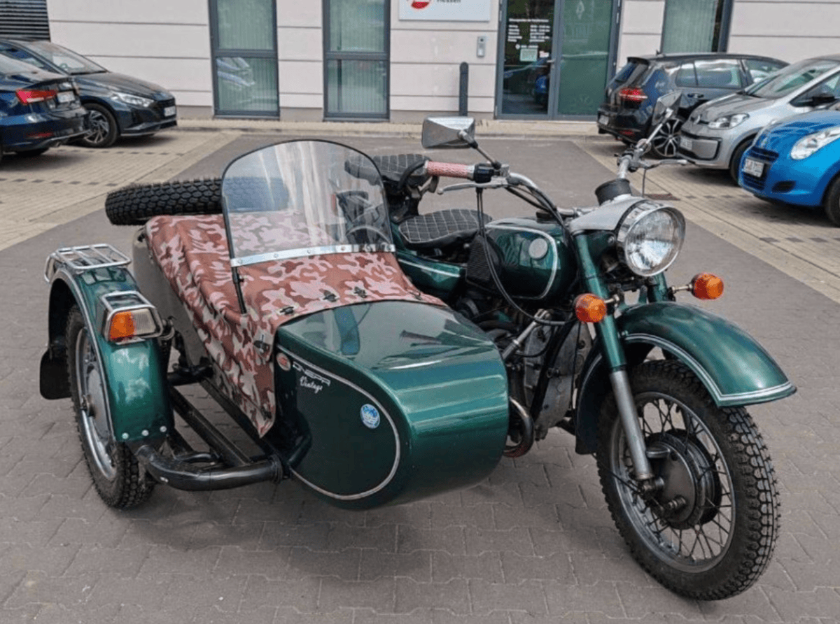 Нещодавно у Німеччині був зафіксований цікавий вінтажний мотоцикл Дніпро з коляскою. Світлини цього українського мотоцикла з’явилися на популярному Телеграм-каналі AC Garage News.