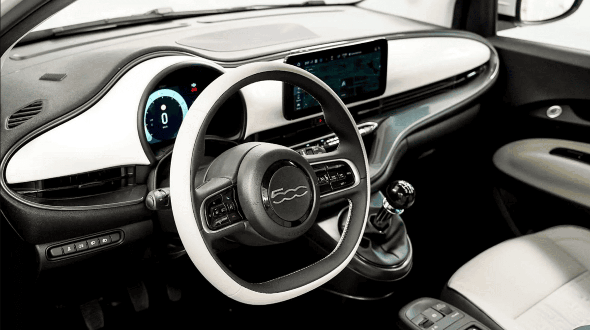 Це не стара модель, а гібридна версія, зроблена на базі 500e. Назвали її Fiat 500 Hybrid. Візуально – майже той самий хетчбек, але з решіткою радіатора і знайомим важелем механіки всередині. Панель з екраном на 10,25 дюйма лишилася без змін.