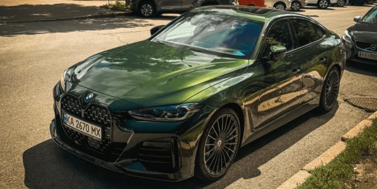 Автомобіль виділяється не лише кольором, а й тим, що таких машин зібрали лише 300 на весь світ. Цей екземпляр має номер 267. Судячи з номерного знака – авто зареєстроване в Києві. Щодо самої Alpina – це не просто тюнінг ател’є. Це окремий виробник, який працює з BMW понад пів століття. B4 отримала 3,0-літровий турбодвигун на 495 к.с. і 730 Н·м. До сотні розганяється за 3,7 секунди. Максимальна швидкість – 301 км/год. Автомобіль має повний привід і 8-ступеневий “автомат”. Середня витрата пального – 9,8 літра на 100 км.
