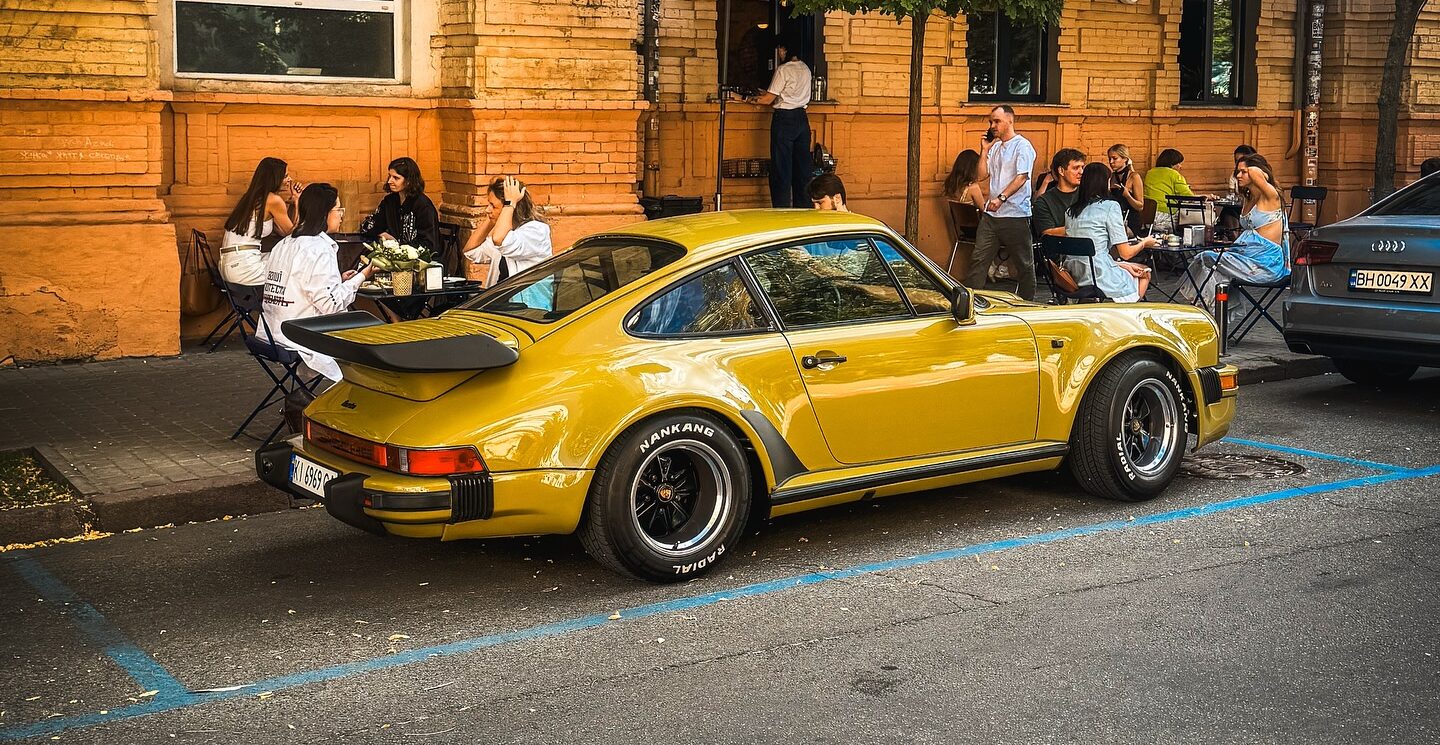 Porsche 930 Turbo вважають знаковим, адже саме він зробив турбомотори масовими у спорткарах. Всього з 1975 по 1989 рік випустили лише 21,5 тисячі таких купе. Екземпляр, помічений у Києві, має 3,3-літровий опозитний двигун на 300 к.с., розгін до сотні за 5,2 секунди та швидкість до 260 км/год.