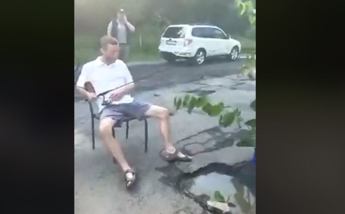 Ями, як водойми: на Закарпатті влаштували риболовлю просто посеред автошляху (ВІДЕО)