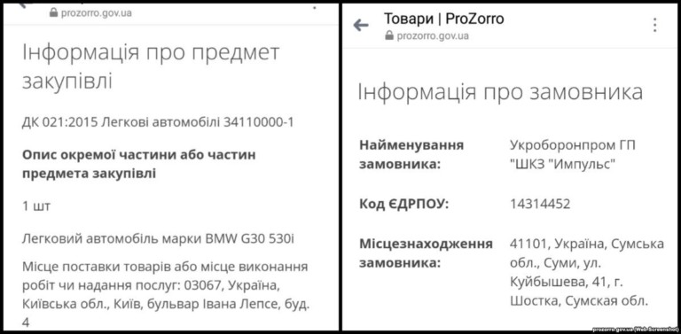 У вересні в тендерній документації системи державних закупівель ProZorro була зафіксована покупка держконцерном “Укроборонпром” автомобіля марки BMW G30 530i вартістю 1,6 млн грн. Переможцем тендеру виступило ТОВ “АВТ Баварія” Київ “. Власником авто став керівник “Імпульсу” Євген Чернов.