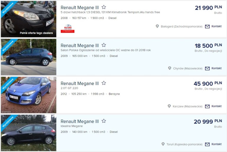 Найпопулярніші майданчики, на яких шукають авто поляки і українці – це olx.pl, otomoto.pl, allegro.pl, autoscout24.pl, autogielda.pl. Ціни на сайтах вказані переважно в злотих. Курс: 1 євро – приблизно 4,2 злотих.