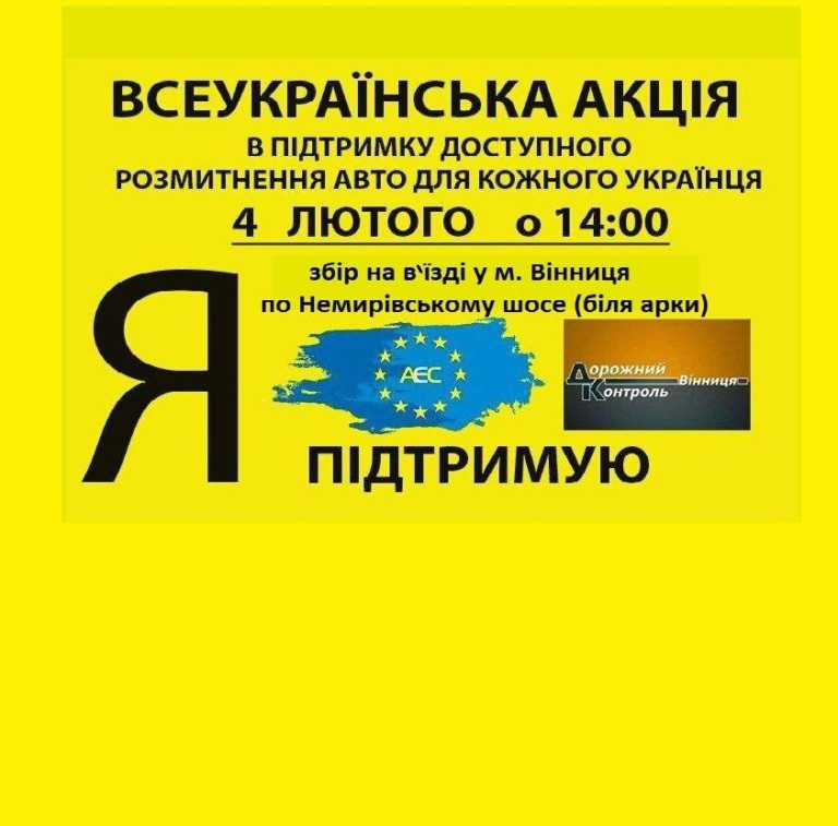 “4 лютого о 14:00 год відбудеться всеукраїнська акція в підтримку доступного розмитнення авто в Україні! Ми вкотре вимушені нагадувати владі про існуючу проблему із нерозмитненими автомобілями! Ми вкотре змушені нагадувати про те, що нинішні стандарти розмитнення не є прийнятливими для українського народу! Тому просимо усіх водіїв, незалежно від вашого авто, незалежно від реєстрації автомобіля, приєднуйтесь до автопробігу, приєднуйтесь до складної боротьби зі злочинною владою для того, щоб нам і нашим дітям стало жити краще. Стало жити краще не лише на словах чиновників у телевізорі, а краще в реальності.