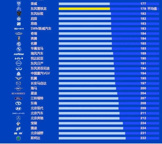 Крім того, Geely, Wuling, Fujian Benz, Lynk & Co, FAW-Volkswagen, Buick, SAIC Maxus, Dongfeng Fengxing, Changan, Tank, Kairui, SAIC-GM Chevrolet, Wey, Changan Lincoln, Chery Land Rover, Changan Ford, Chery Jaguar, Changan Auchan, Zhengzhou Nissan, SAIC-Volkswagen, Haval, Dongfeng Fengshen, GAC Trumpchi та Roewe були вище середнього.