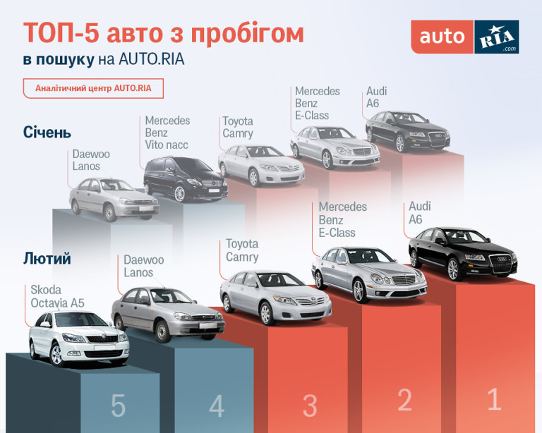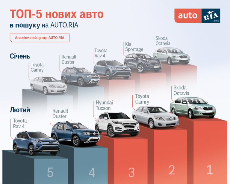 Що ж стосується нових автомобілів, то тут інтереси українців змінюються більш радикально. При непорушних позиціях лідера Skoda Octavia, володар січневого другого місця Kia Sportage не потрапив навіть до п’ятірки.