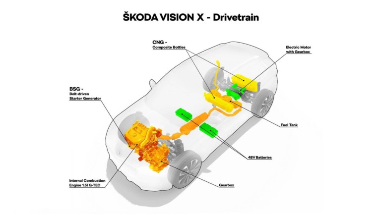 Skoda Vision X отримає 1,5-літровий бензиновий мотор TSI, який також зможе працювати на стиснутому природному газі.