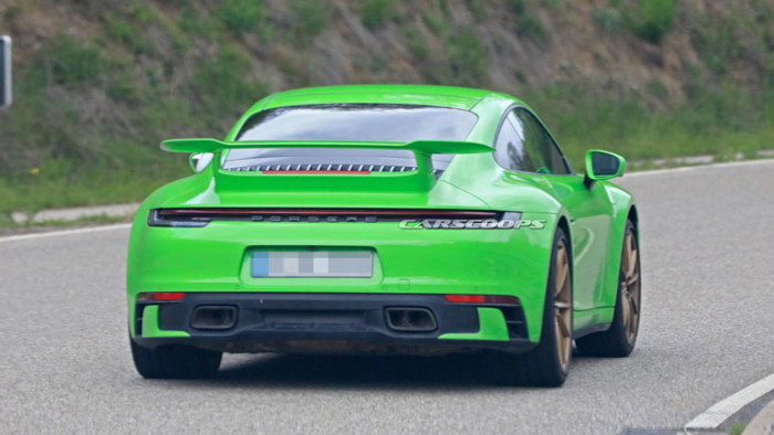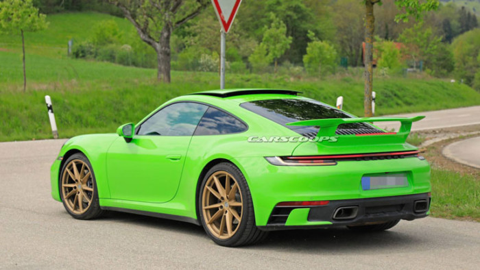 Судячи по знімках, автомобіль отримав цілий ряд значних відмінностей від існуючих 992 Carrera S / 4S, найбільш очевидною з яких є масивне і нерухоме заднє антикрило. Деталь не настільки велика і загрозлива, як на прототипах 992 GT3, але дуже схожа на них. Новий аеродинамічний елемент призвів до деяких змін в задній частині: додаткова лампа стоп-сигналу тепер прикріплена до основи крила, а вентиляційні решітки над двигуном мають трохи іншу конструкцію.