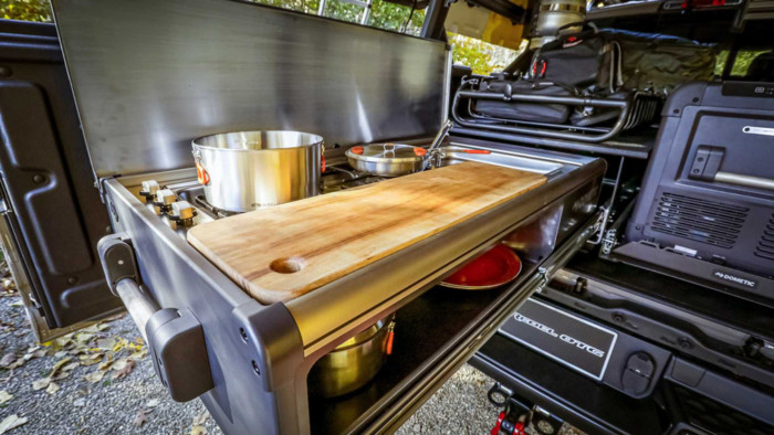 Ram 1500 Rebel OTG забезпечили усім найнеобхіднішим для перебування на природі. У вантажний відсік встановили висувний модуль з кухнею і мийкою. Також машина отримала повітряний компресор і генератор, який живиться від сонячної батареї, встановленої на даху.