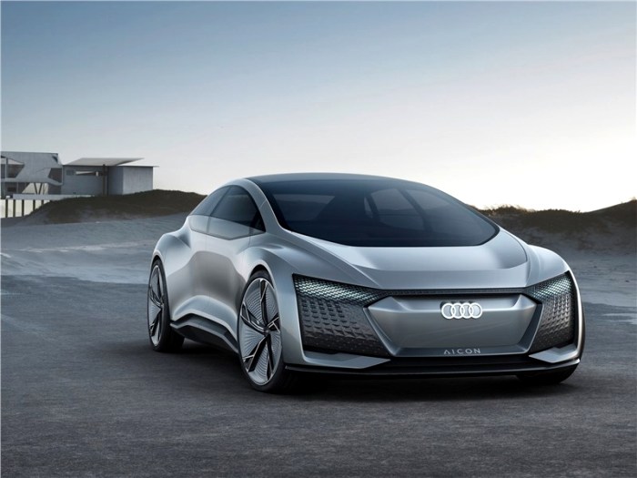 У 2017 році був презентований концепт безпілотного електромобіля Audi Aicon, який вирізняється з-поміж інших моделей, він може проїхати від 435 до 497 миль на одному заряді. Також оснащений чотирма електродвигунами. Ще одна особливість цієї моделі він дуже швидко заряджається- менш за півгодини до вісімдесяти відсотків.